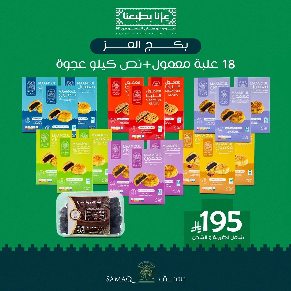 استمتع بأجود أنواع الضيافة مع بكج العرض الكبير الذي يضم 2 علب نصف كيلو من عجوة المدينة الفاخرة، الدرجة الأولى، الغنية بالنكهة والقيمة الغذائية. بالإضافة إلى مجموعة مختارة من المعمول التقليدي اللذيذ، والتي تشمل: